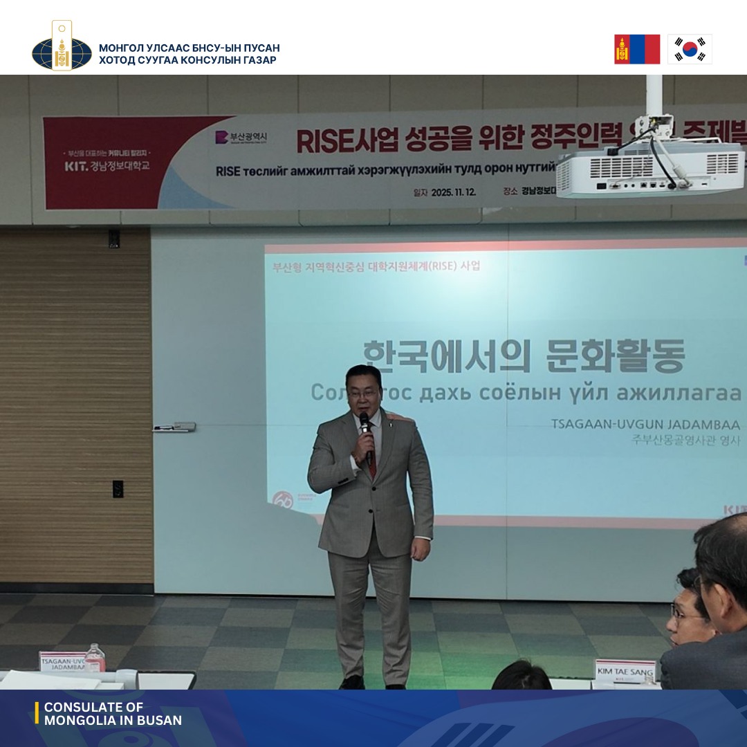 Монгол Улсаас БНСУ-ын Пусан хотод суугаа Консул Ц.Жадамбаа Кённам мэдээлэл технологийн коллежид суралцаж буй Монгол оюутнуудтай сургуулийн байранд уулзалт хийв.