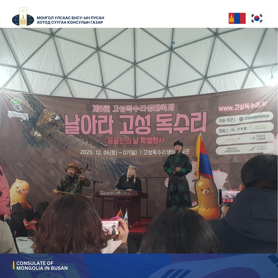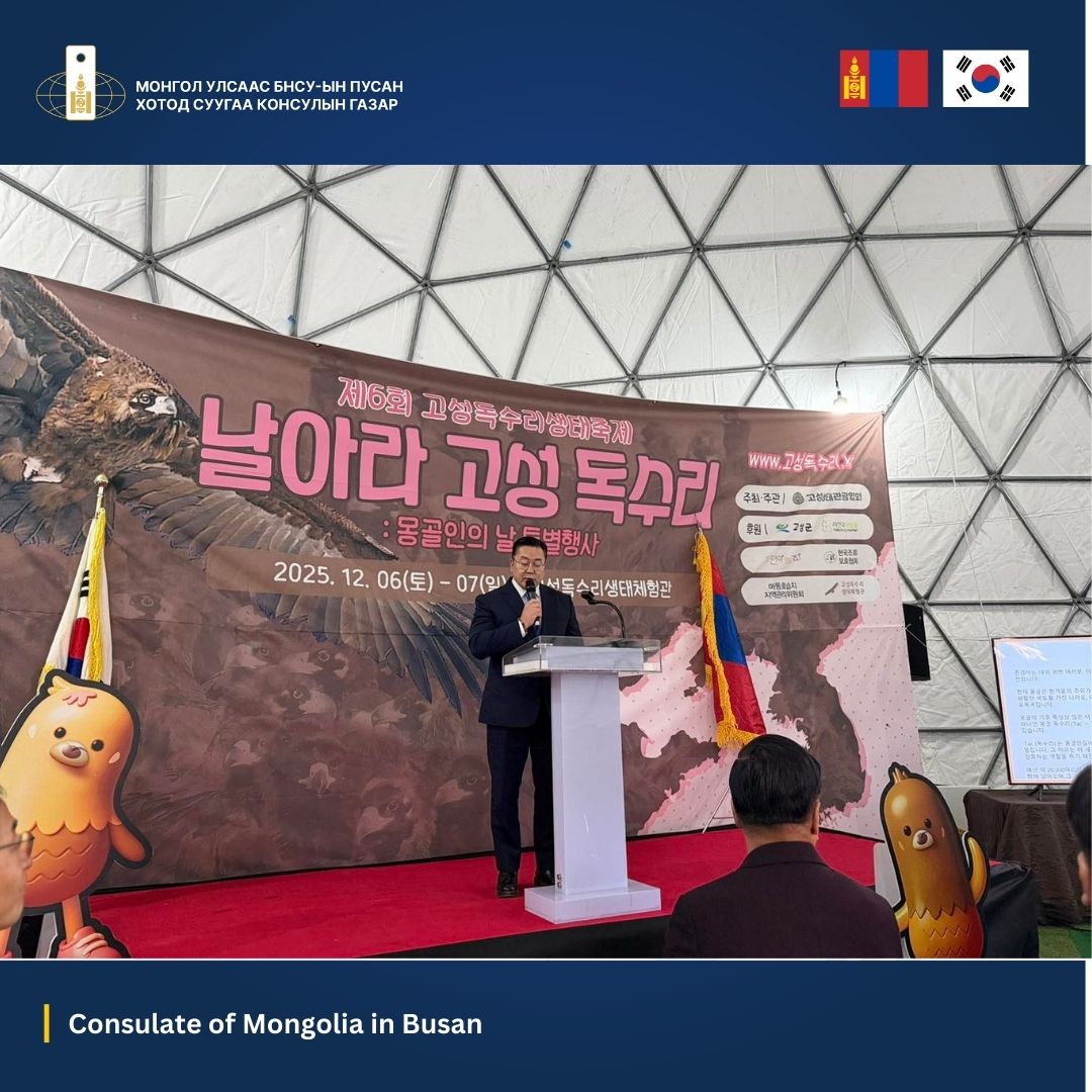 Өмнөд Кёнсан мужийн Гусон сумын захиргаанаас жил бүр уламжлал болгон зохион байгуулдаг “Тас шувууны өдөр” арга хэмжээнд Монгол Улсаас БНСУ-ын Пусан хотод суугаа Консул Ц.Жадамбаа оролцов.
