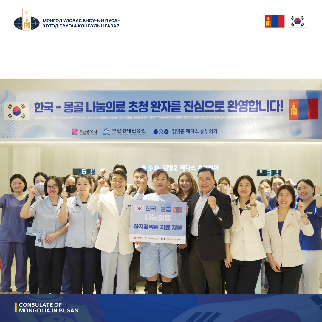 НСУ-ын Пусан хотын Ким Бён Жүн Рэдаси эмнэлэг нь нийгмийн хариуцлагын хүрээнд “Эмнэлгийн үйлчилгээг хуваалцъя” сайн үйлсийн төслийг 2019 оноос хойш хэрэгжүүлж байна.