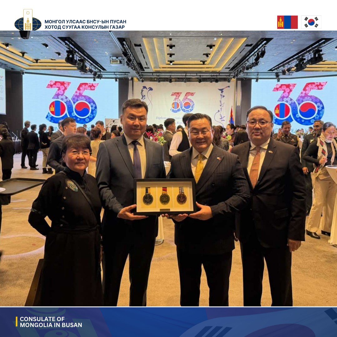 Монгол Улсаас БНСУ-д суугаа Элчин сайдын яамнаас зохион байгуулсан Монгол Улс, БНСУ-ын хооронд дипломат харилцаа тогтоосны 35 жилийн ойн “Хүндэтгэлийн арга хэмжээнд” Консул Ц.Жадамбаа, Дэд консул Ц.Сийлэгмаа, Дэд консул Б.Билэгсайхан нар оролцлоо.