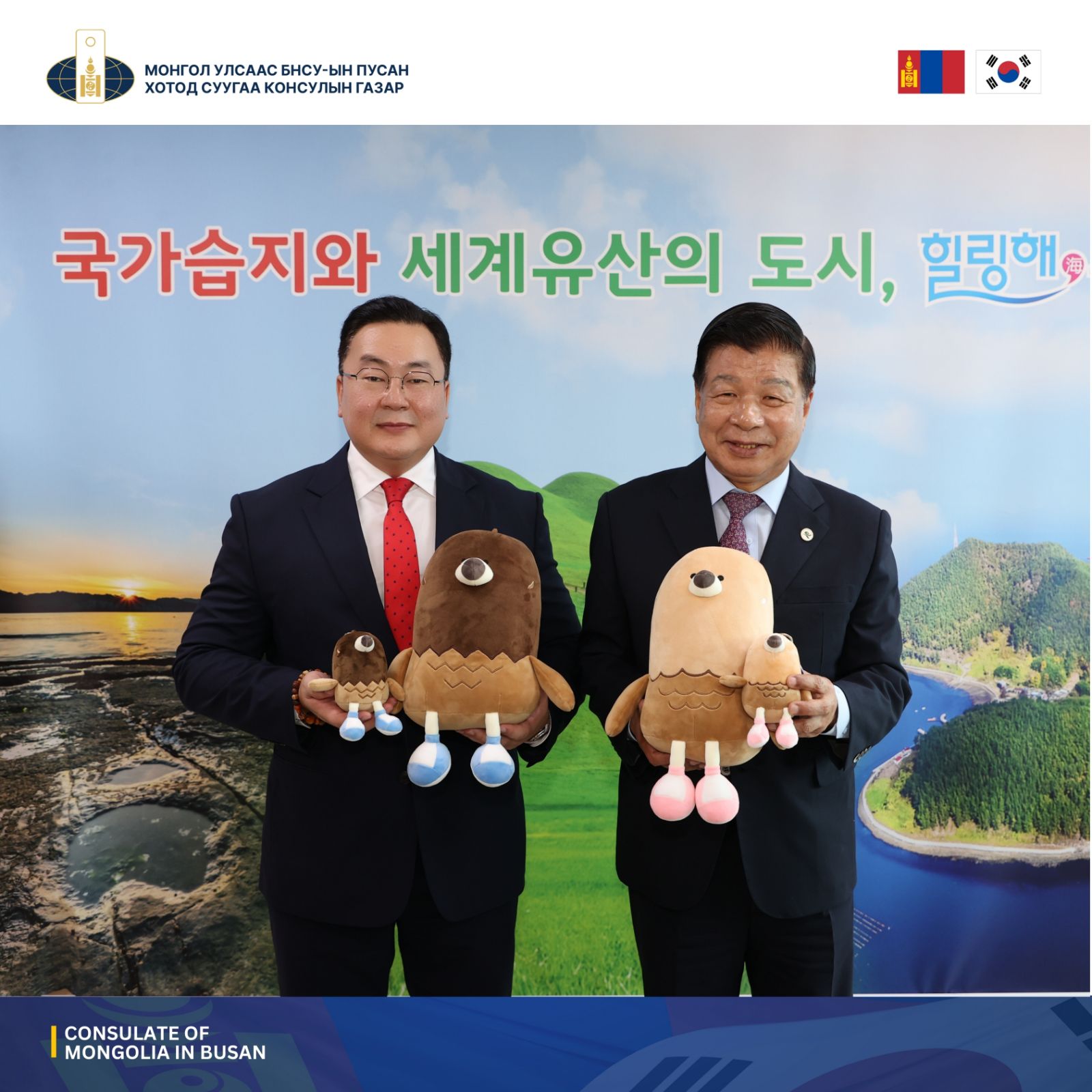 Монгол Улсаас БНСУ-ын Пусан хотод суугаа Консул Ц.Жадамбаа Өмнөд Кёнгсан мужийн Гусон сумын засаг дарга И Сан Гынтай уулзалт хийв. Уулзалтад Гусон сумын Аялал жуулчлалыг дэмжих хэлтсийн дарга Дун Сын Гын, Нунхёб банкны Гусон салбарын захирал Ким Мү Сон болон Консулын газрын албан хаагчид оролцов.